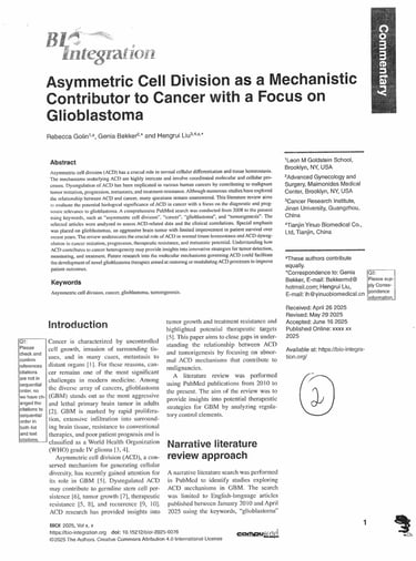 Asymmetric Cell Division as a Mechanistic Contributor to Cancer with a Focus on Glioblastoma